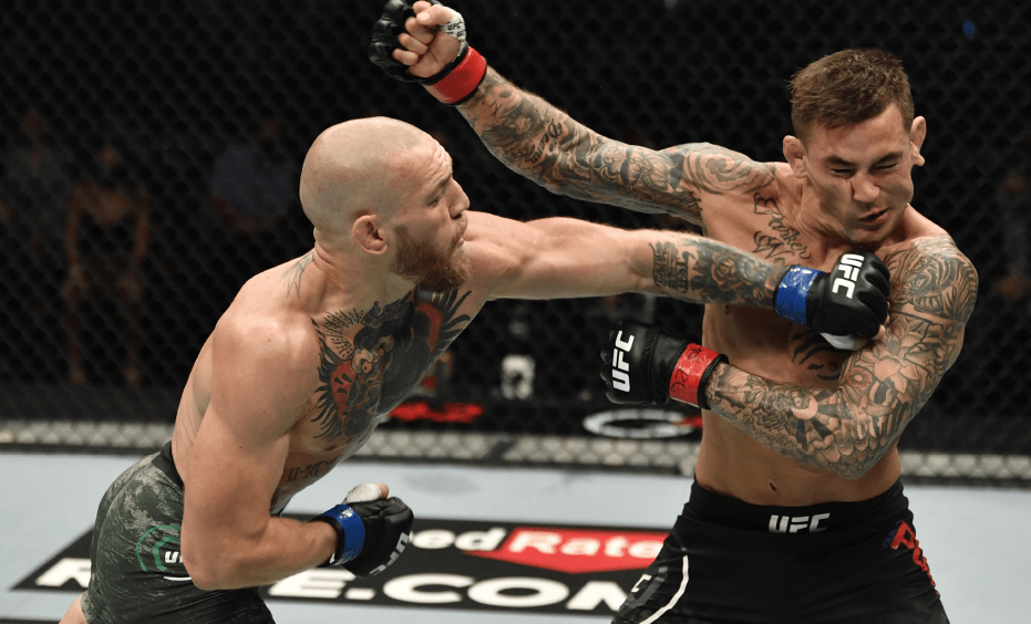 Connor McGregor lays punch into Dustin Poirier’s face during UFC 257