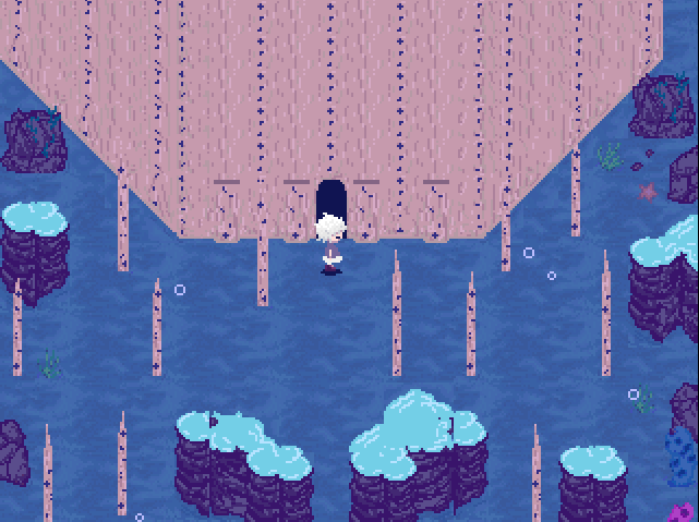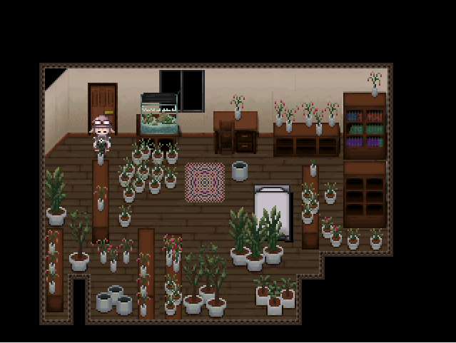 In Dot Flow the doors are completely gone in favor of exits in each of the cardinal directions, while this does reduce the number of entrances in the nexus it makes it easier to get to important worlds that may serve a story purpose. Yume 2kki decides to expand on the nexus even more making the nexus an even bigger room with objects to interact with that represent the world.