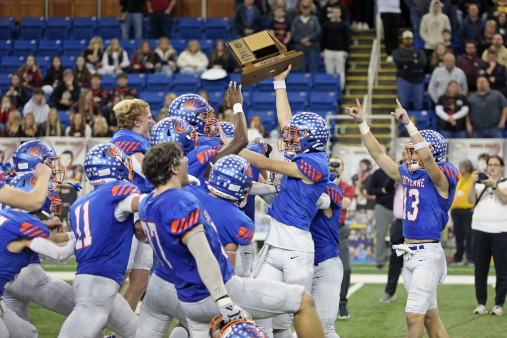 In the first quarter things looked grim for the Mustangs: Davies was ahead by one touchdown, but in the quarters to come the Mustangs were lights out. Sheyenne won 24-14 winning the second state championship in school history.
